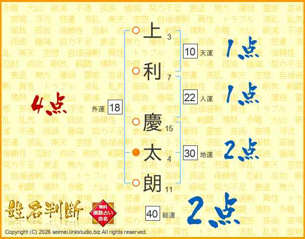 上利慶太朗さんの総運は40画の2点!