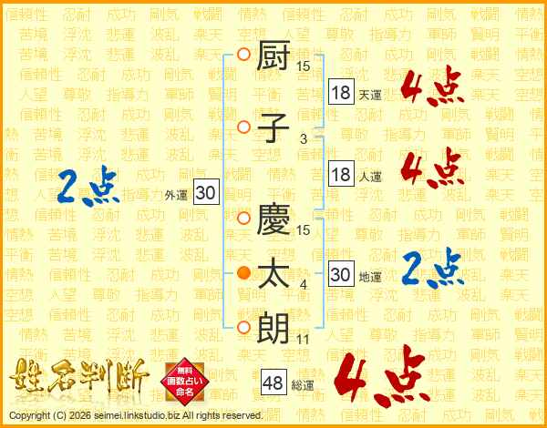 厨子慶太朗さんの総運は48画の4点!
