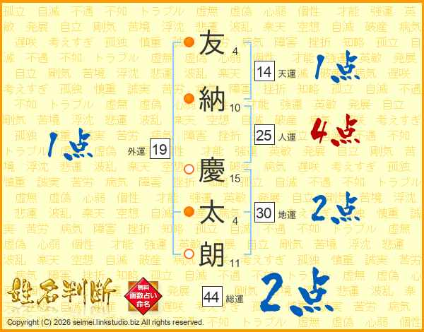 友納慶太朗さんの総運は44画の2点!