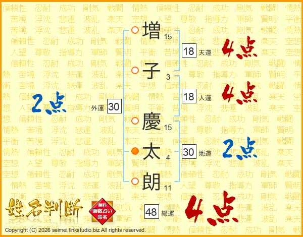 増子慶太朗さんの総運は48画の4点!