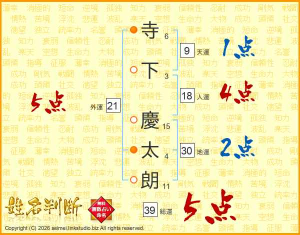 寺下慶太朗さんの総運は39画の5点!