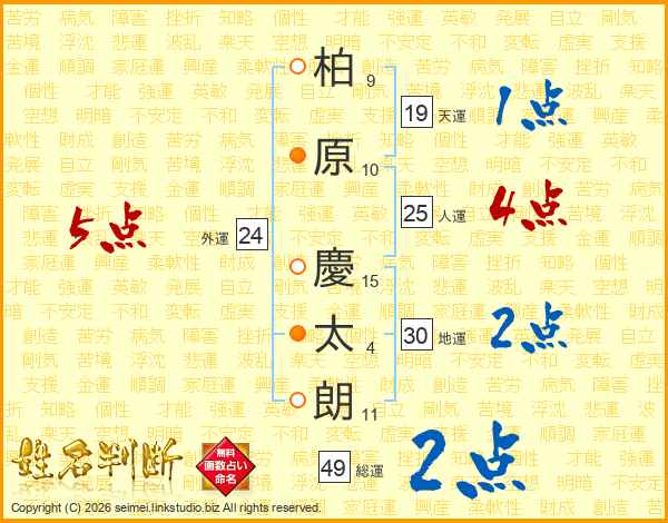柏原慶太朗さんの外運は24画の5点!