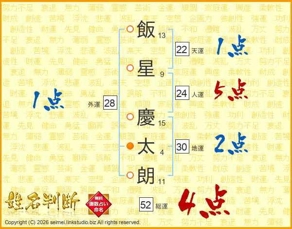 飯星慶太朗さんの総運は52画の4点!