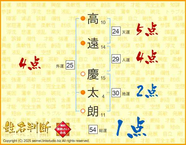 高遠慶太朗さんの天運は24画の5点!