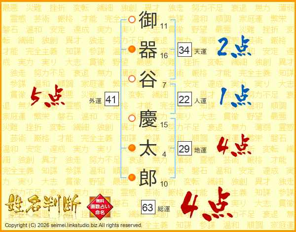 御器谷慶太郎さんの総運は63画の4点!