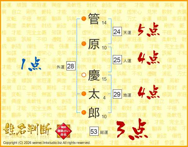管(14画)原(10画) 慶(15画)太(4画)郎(10画)