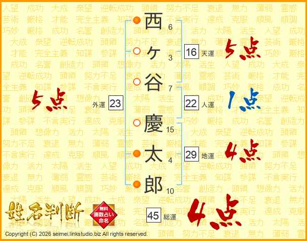 西ヶ谷慶太郎さんの総運は45画の4点!