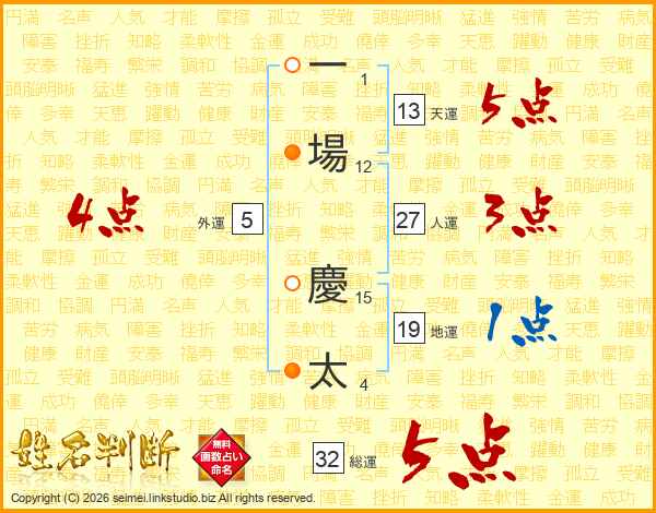 一場慶太さんの天運は13画の5点!