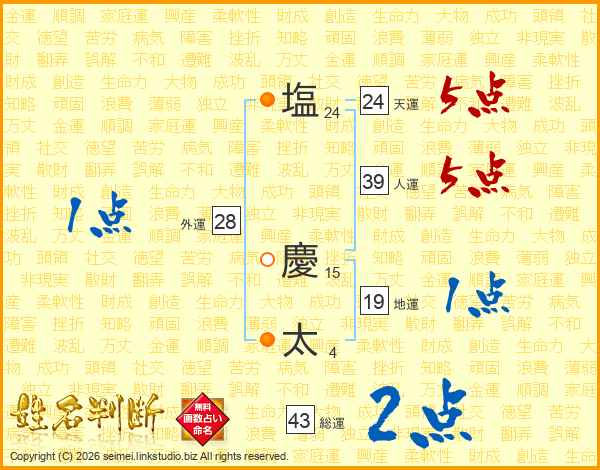 塩(24画) 慶(15画)太(4画)