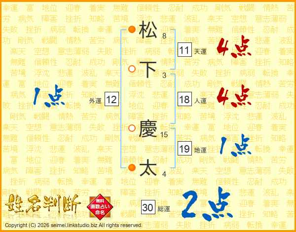 松下慶太さんの総運は30画の2点!