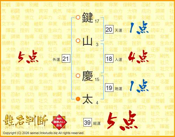 鍵山慶太さんの総運は39画の5点!