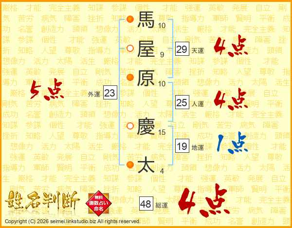 馬屋原慶太さんの天運は29画の4点!
