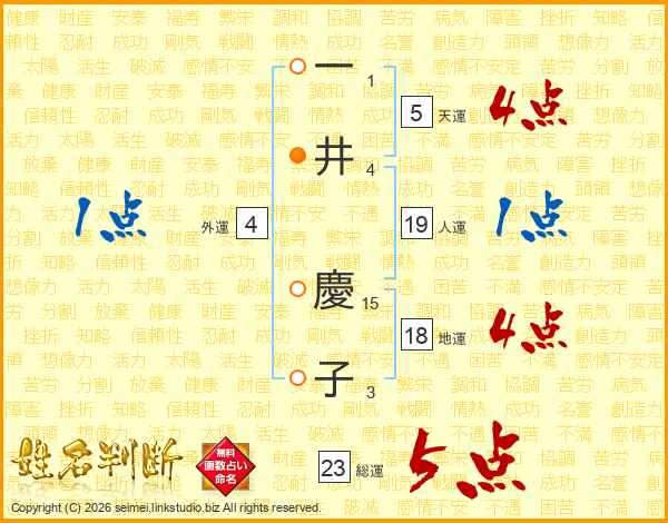 一井慶子さんの総運は23画の5点!