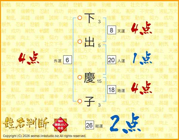 下出慶子さんの総運は26画の2点!