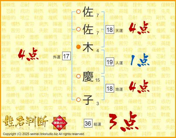 佐(7画)佐(7画)木(4画) 慶(15画)子(3画)