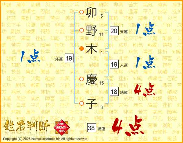 卯野木慶子さんの総運は38画の4点!