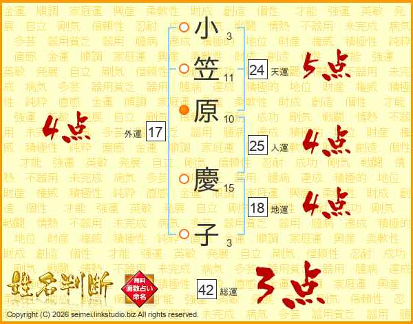 小笠原慶子さんの外運は17画の4点!