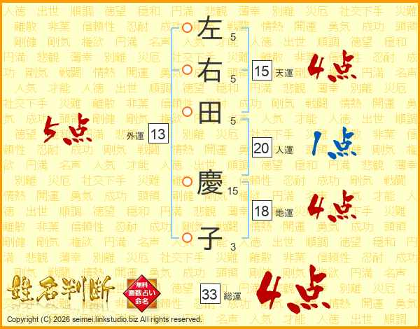 左右田慶子さんの総運は33画の4点!