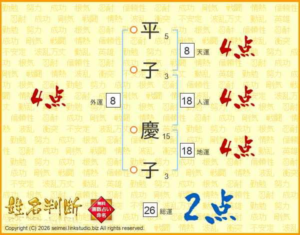 平子慶子さんの総運は26画の2点!
