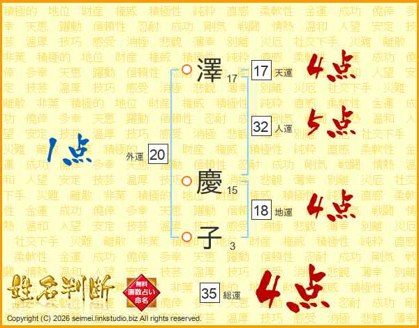 澤(17画)  慶(15画)子(3画)