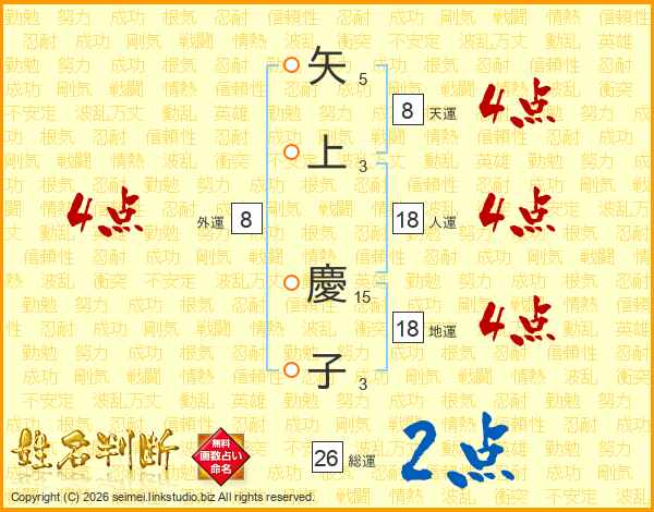 矢上慶子さんの総運は26画の2点!