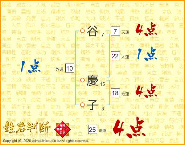 谷慶子さんの総運は25画の4点!