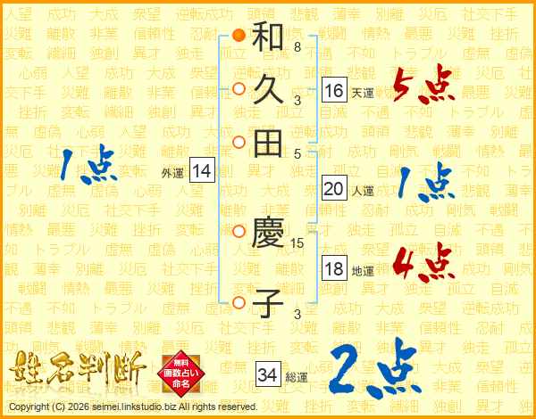 和久田慶子さんの総運は34画の2点!