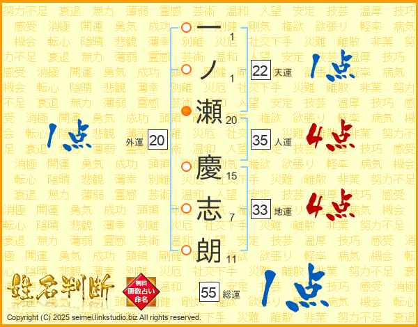 一ノ瀬慶志朗さんの天運は22画の1点!