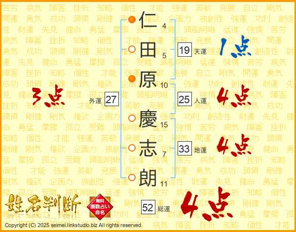 仁田原慶志朗さんの総運は52画の4点!