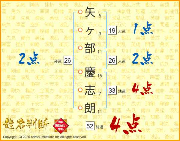 矢ヶ部慶志朗さんの総運は52画の4点!