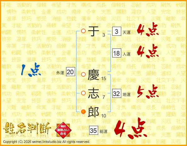 于慶志郎さんの総運は35画の4点!
