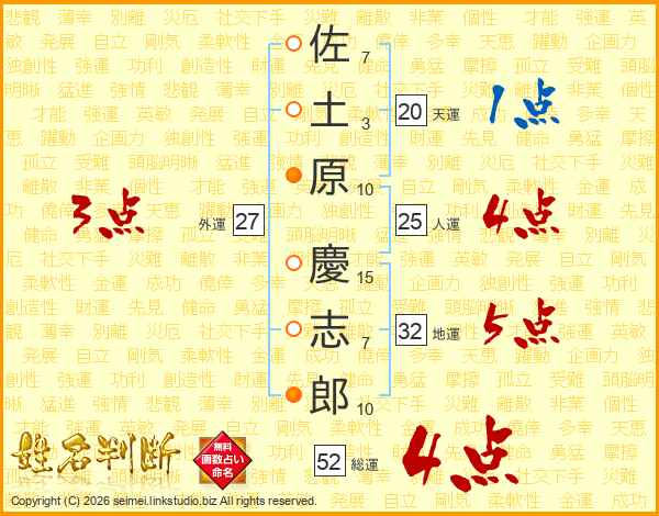 佐(7画)土(3画)原(10画) 慶(15画)志(7画)郎(10画)
