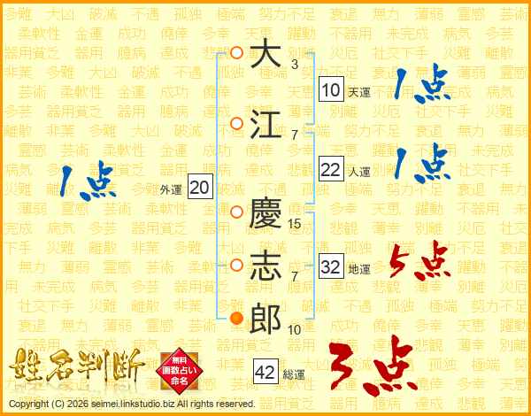 大江慶志郎さんの人運は22画の1点!