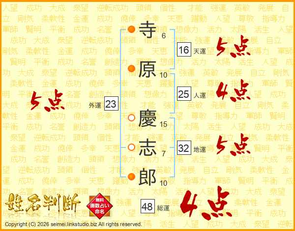 寺原慶志郎さんの人運は25画の4点!