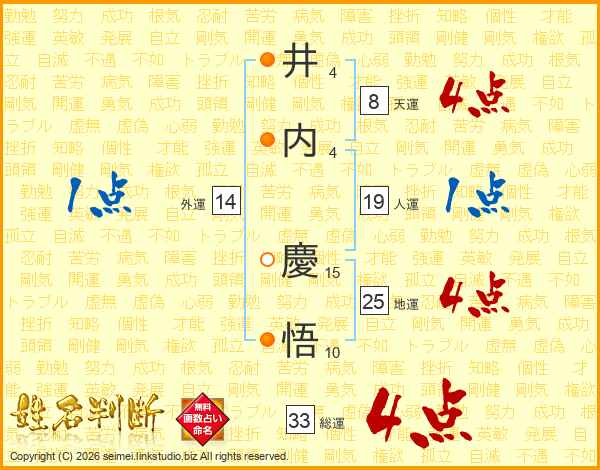 井内慶悟さんの総運は33画の4点!