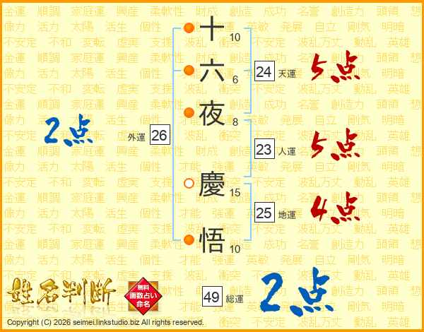 十六夜慶悟さんの総運は49画の2点!