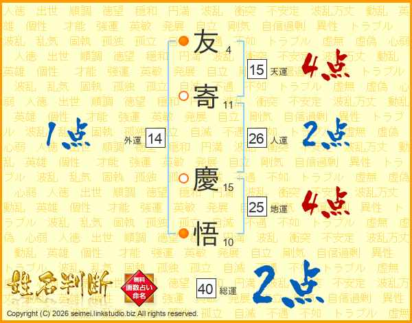 友寄慶悟さんの人運は26画の2点!