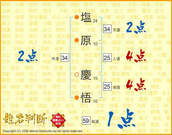塩(24画)原(10画) 慶(15画)悟(10画)