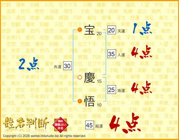 宝慶悟さんの総運は45画の4点!