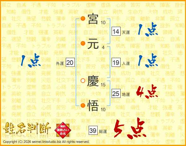 宮元慶悟さんの総運は39画の5点!