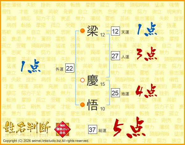 梁慶悟さんの総運は37画の5点!