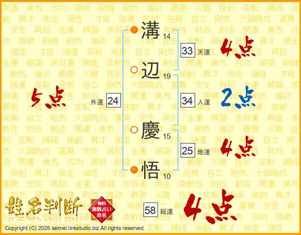 溝(14画)辺(19画) 慶(15画)悟(10画)