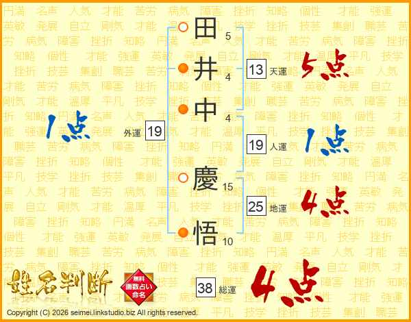 田井中慶悟さんの総運は38画の4点!