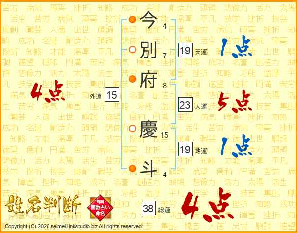 今(4画)別(7画)府(8画) 慶(15画)斗(4画)