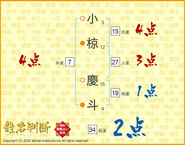 小(3画)椋(12画) 慶(15画)斗(4画)