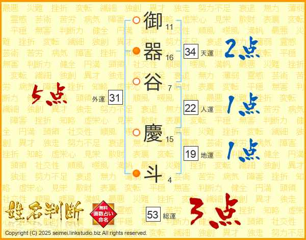 御器谷慶斗さんの総運は53画の3点!