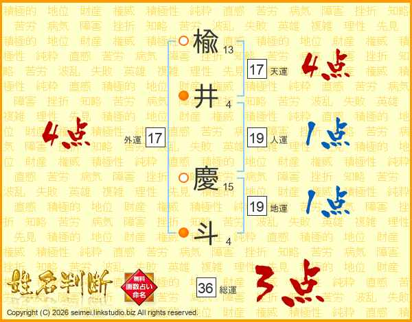 楡井慶斗さんの外運は17画の4点!