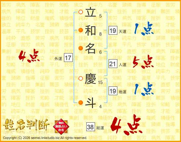 立(5画)和(8画)名(6画) 慶(15画)斗(4画)