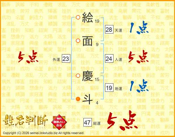 絵面慶斗さんの総運は47画の5点!