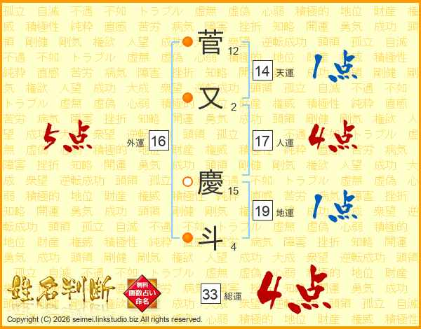 菅又慶斗さんの総運は33画の4点!